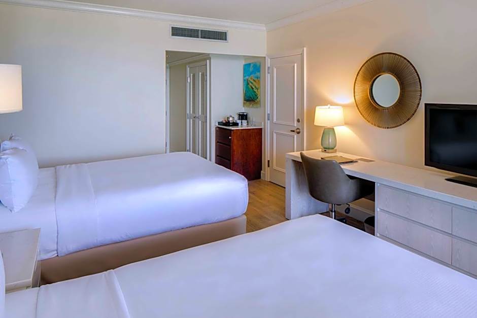 This attractive suite has 2 spacious balconies and floor-to-ceiling windows. There is a bedroom with 2 double beds, and a living area with sofa and mini-bar.